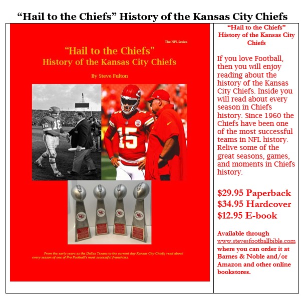 Available at Barnes & Noble {PB & HC}: https://www.barnesandnoble.com/w/hail-to-the-chiefs-history-of-the-kansas-city-chiefs-steve-fulton/1147108360?ean=2940181308381
