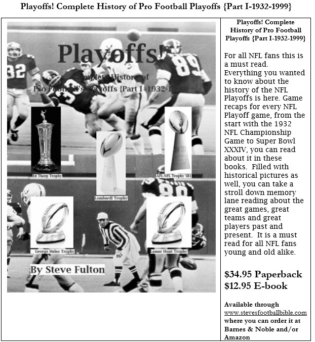 Part I Available at Bookshop.com: https://bookshop.org/p/books/playoffs-complete-history-of-pro-football-playoffs-part-i-1932-1999-steve-fulton/17237571?ean=9798201030223