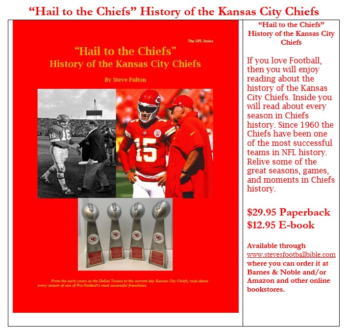 Available at Barnes & Noble: https://www.barnesandnoble.com/w/hail-to-the-chiefs-history-of-the-kansas-city-chiefs-steve-fulton/1147108360?ean=2940181308381