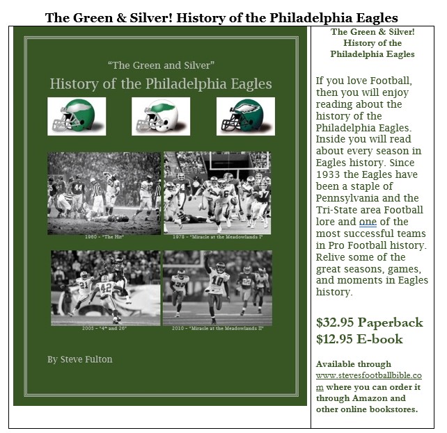 Available at Barnes & Noble: https://www.barnesandnoble.com/w/the-green-silver-history-of-the-philadelphia-eagles-steve-fulton/1144667384?ean=9798224309641