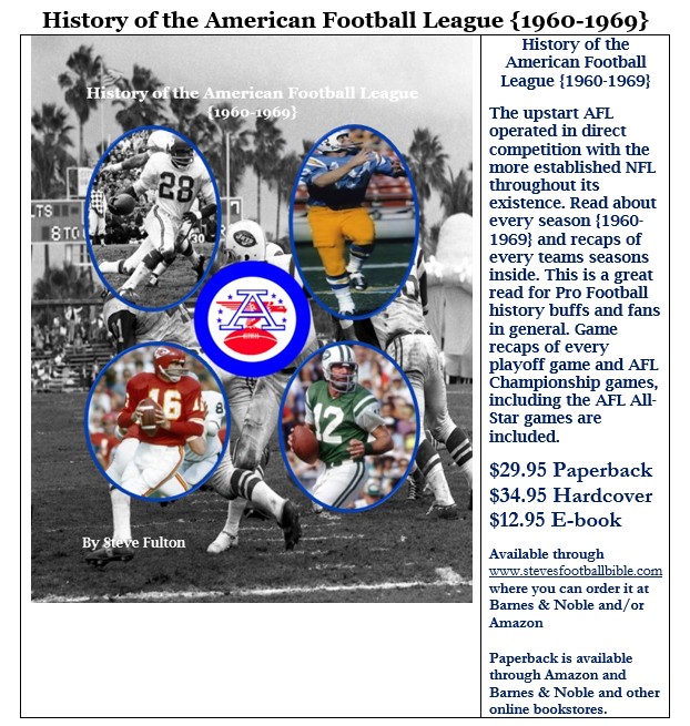 Available at Thriftbooks.com: https://www.thriftbooks.com/w/history-of-the-american-football-league-1960-1969_steve-fulton/38891565/all-editions/?resultid=4e9f57ea-60b1-4d73-ab8a-155794a8f1da